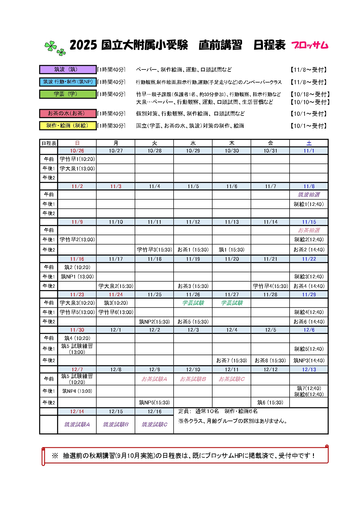 筑波大筑波小学校クラス 11/8~受付ます 筑波教室受付入金者を優先します。お知らせで確認してください。