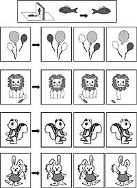 幼稚園在園中や小学校に入学する前に身につけておきたい能力には、運筆・数・注意力・推理・思考・常識・言語・記憶・行動観察・巧緻性があります。それぞれの能力に応じた問題を掲載しています。 |